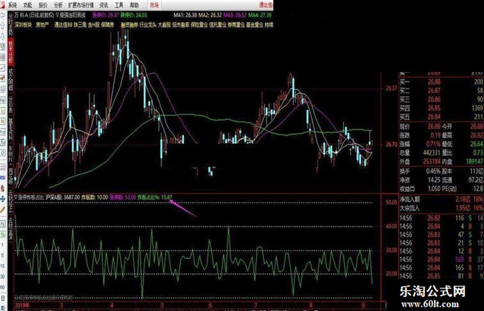 3.建立一个名为‘涨停炸版占比’的副图公式,代码: