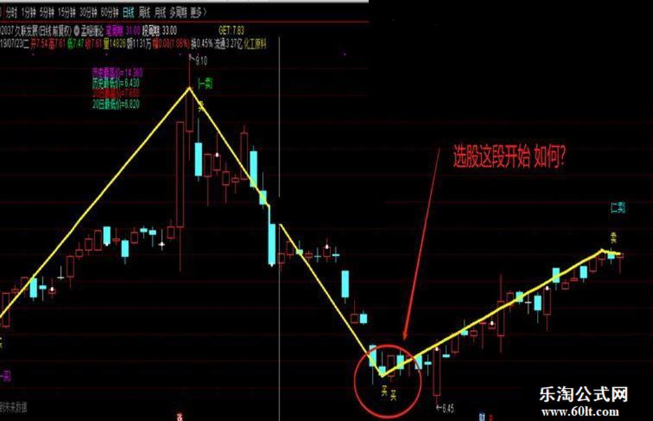 DRAWTEXT(EX2 AND PL20>REF(PL20,1) AND ZTJD10=2 OR (ZTJD10=0 OR ZTJD10=2) AND EX2,H*1.03,'[一卖]'),COLOR00FF00,LINETHICK3;