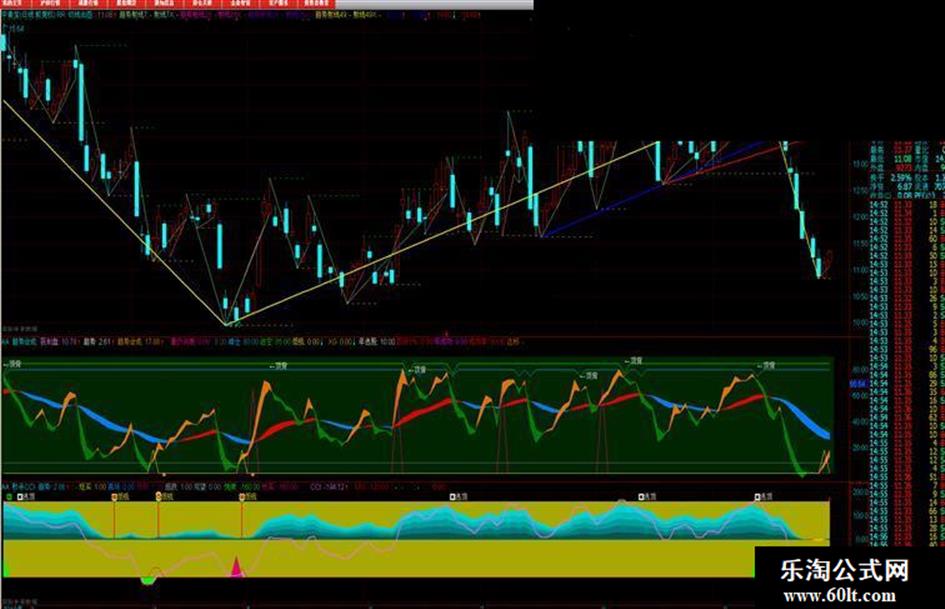 有同学提出要分享'趋势合成'此公式是我上周才做的,还没捂热呢,我一直梦用一个副图指标容纳多个公式,目前只是探索阶段。