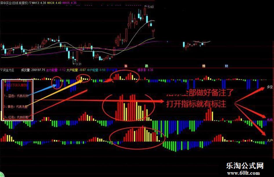 该指标优点:机构是出货?洗盘还是吸筹一目了然蓝色:代表出货黄色:代表洗盘红色:代表吸筹