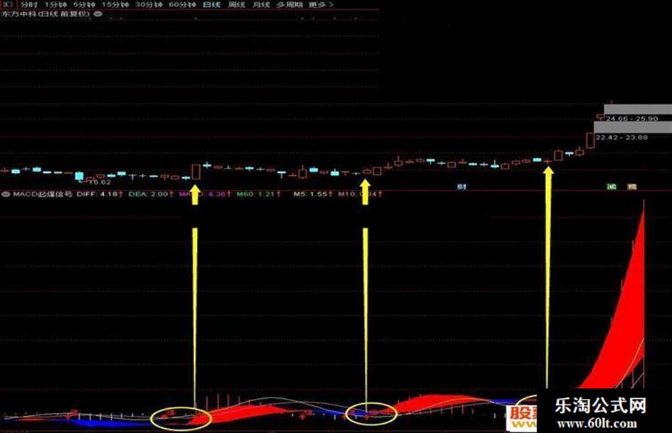 关健还是MACD的柱线与黄粉线关系,彩带线与黄粉线关系,以及彩带线与MACD的柱线,如果对MACD渗透比较好的朋友那指标则会辅助你快速作出判断!