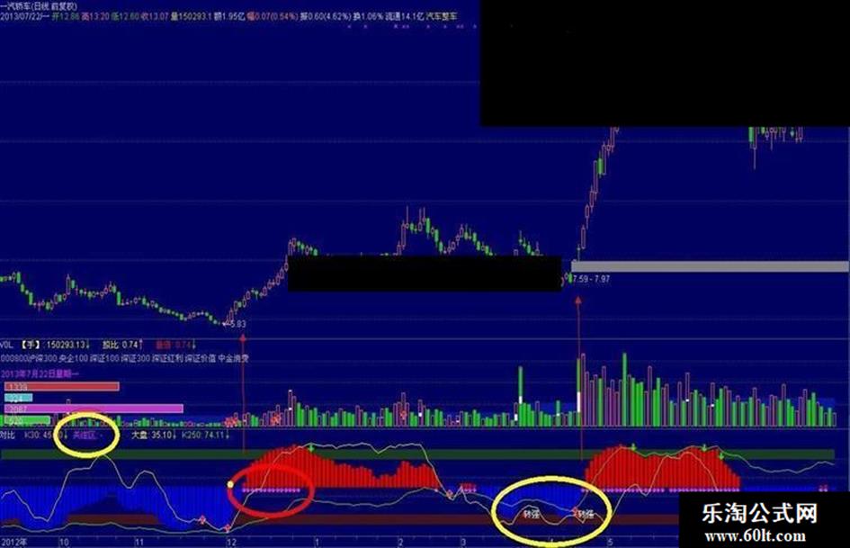 关注区:IF(K30>DPK30 AND K30>50,46,DRAWNULL),CIRCLEDOT,COLORFF00FF;