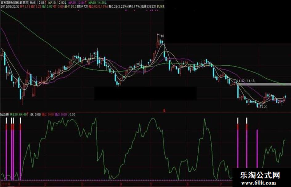 BI40:=(C-MA(C,40))/MA(C,40)*100+14,COLORFF00FF;