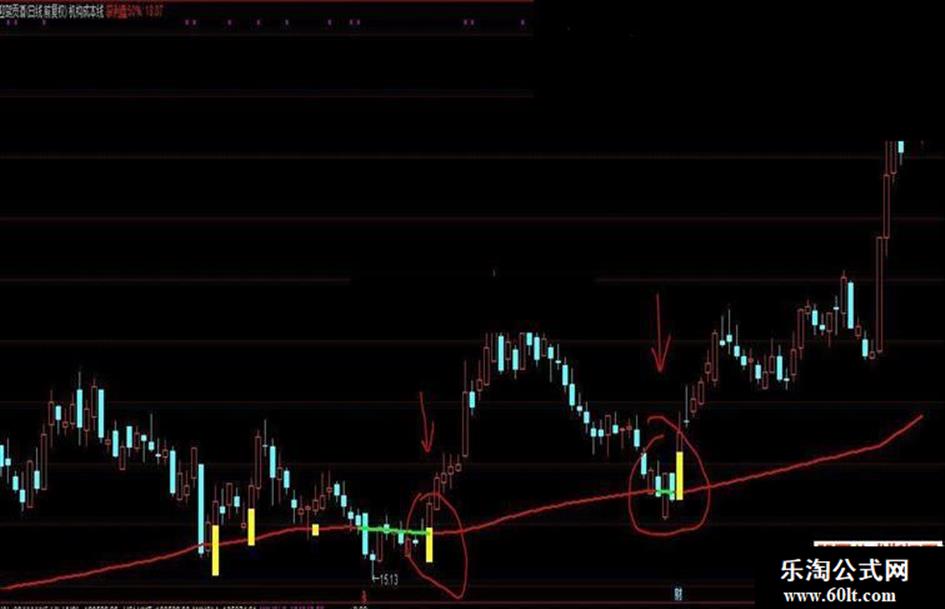 股价在红线上运行属于强势股,股价在绿线下运行属于弱势股。只做强势股,避开弱势股。