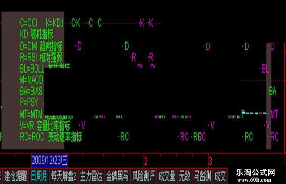 为解决通达信本身设置限制使解盘指标少的难题,我用分栏列出和遮掩的方法进行了尝试,经过多次的试验测试,将通达信的交易系统里的KDJ、KD、 MACD、RSI、DMI、CCI、BOLL、ROC、MTM、BIAS、PSY 、VR等买卖指标都放了进去,通过副图即时自动测算个股并将信号列出,左边栏可作解盘或加附言,左边长条栏内的信号为即时的,用日线为当日,用60分钟为一小时内的判定,将通达信的交易系统同时显示,对持股持币选择有指导性作用,极为方便。