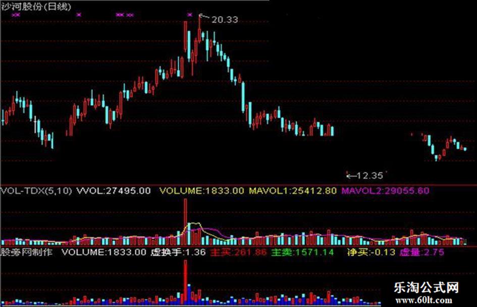 主买:IF(CLOSE>OPEN,VAR1*(HIGH-LOW),IF(CLOSE<OPEN,VAR1*((HIGH-OPEN)+ (CLOSE-LOW)),VOL/2)),COLORRED,POINTDOT;
