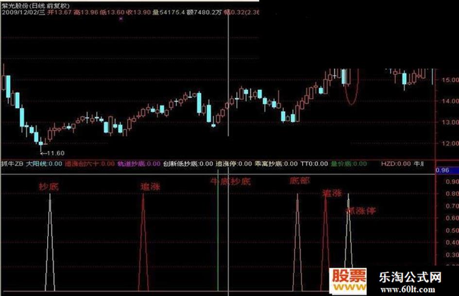 追涨创六十:IF(V1>60 AND V2,0.8,0),COLORRED;