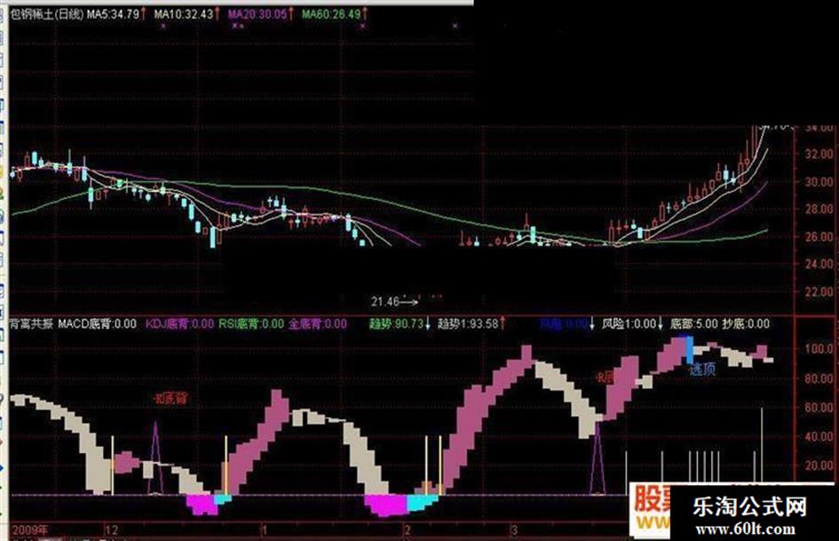 全底背:IF(MACD底背 OR KDJ底背 OR RSI底背,50,0),COLORFF00FF;