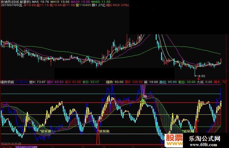DRAWTEXT(底背离,22.12,'*底背离')COLORYELLOW,LINETHICK8;