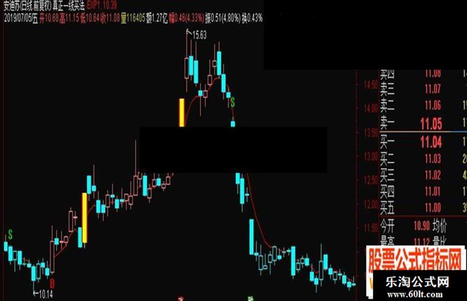 STICKLINE(OPEN>CLOSE,CLOSE,OPEN,2.5,0),COLORCYAN;涨停:=IF(REF(C,1)*1.1-C<0.2 ,1,0);