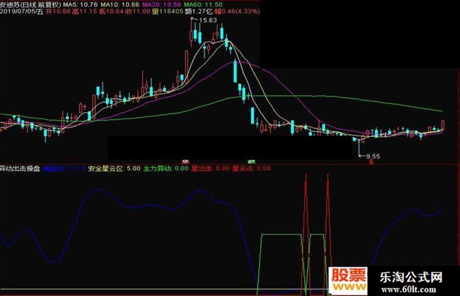 主力异动: IF(操盘线<=5,50,0), , COLORGREEN;