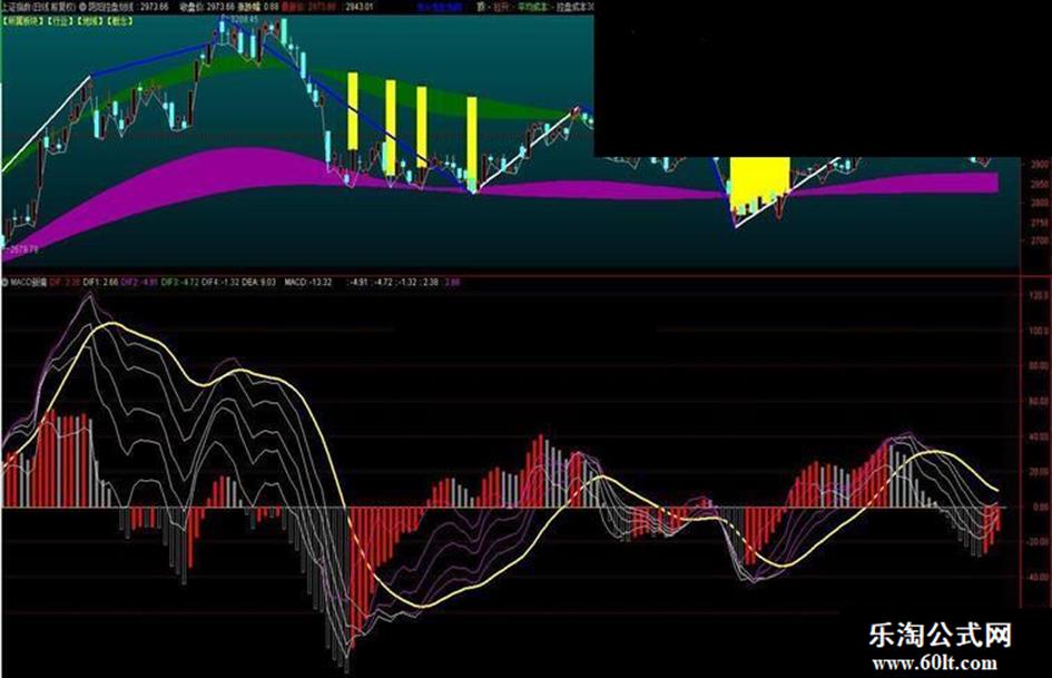 今天下载别人的公式受到启发,干脆编了一个新的MACD,一套波浪曲线,有用的柱都变红色,没用的变灰色,其它的自己悟去吧