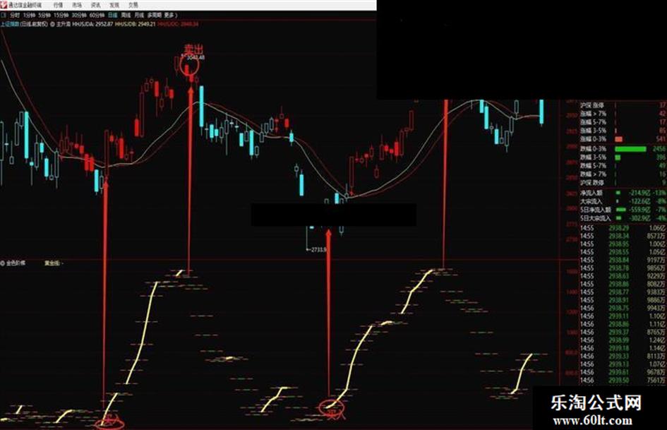 用法:黄金线出现可以买入,消失卖出。看大盘指数帮你逃顶,抄底。