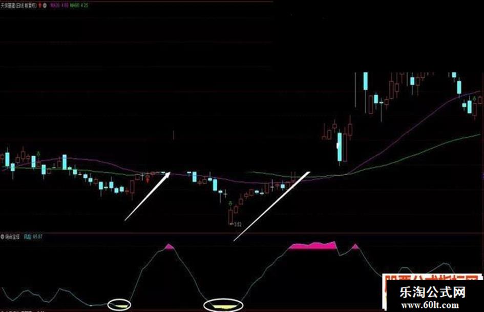 1、该指标比较简单,只有两个信号,一个底部的黄色深坑区,一个顶部的红色风险区。