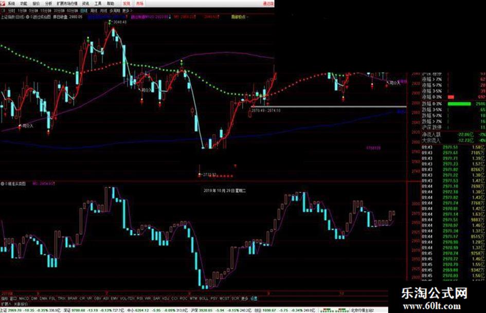 这是一组精准买卖点的副图指标.自已使用下来认为不错的.线上买线下甩呵呵呵...........你懂得!!看大盘.看个股清晰明了.看趋势一目了然.再不会骗线了.是个不可多得的精品指标.废话少说上图看看!
