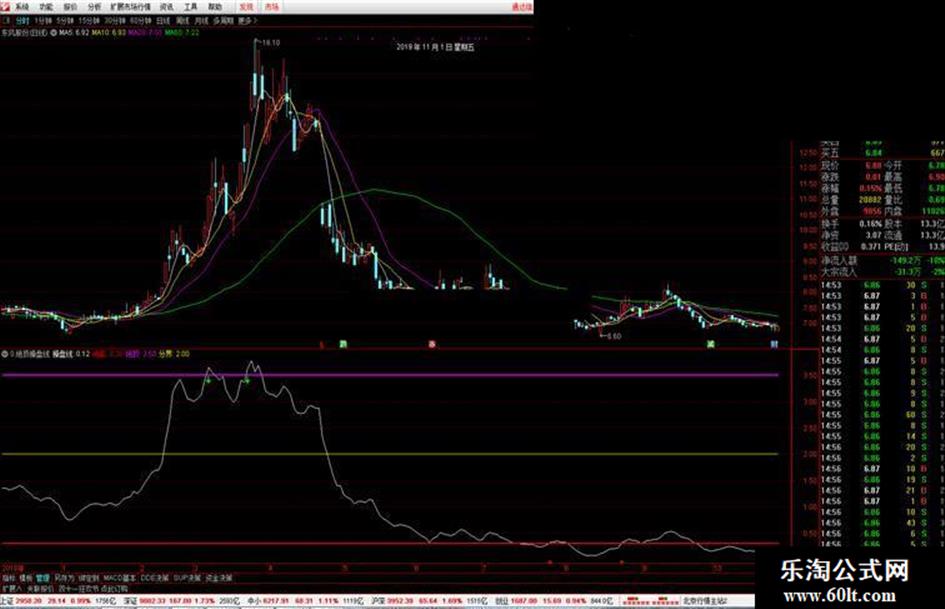 这款副图公式和朋友交流时经常使用的.还不错.画面简洁流畅 .逃顶信号清晰明了.现分享给有缘的朋友们.喜欢的就下载试试看
