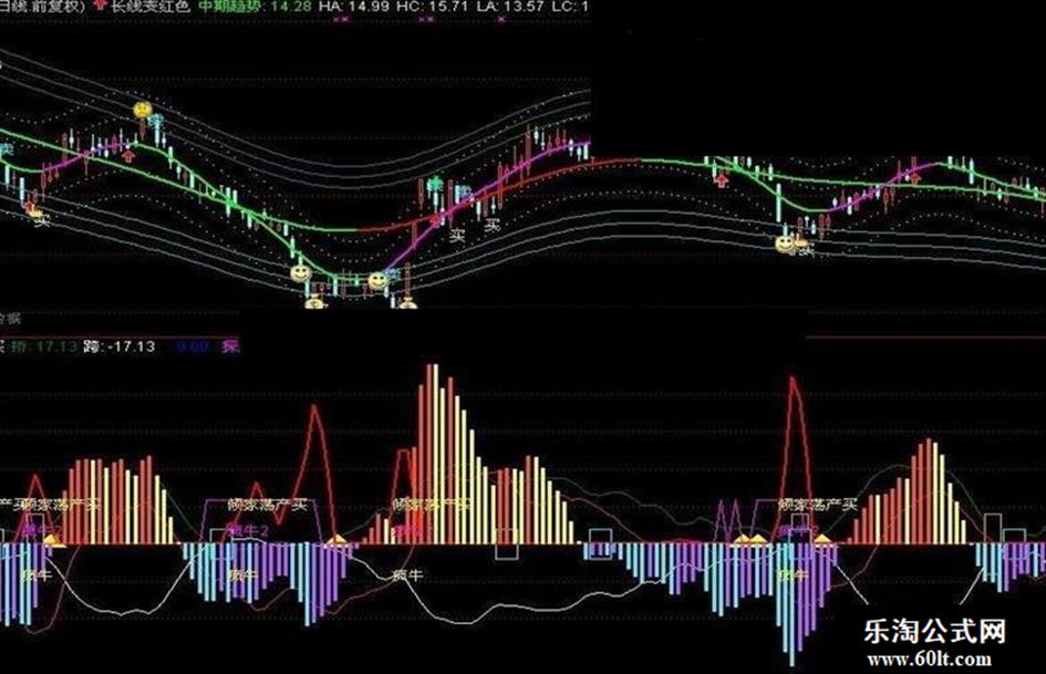 {DRAWTEXT(CROSS(绝佳买点,2.40000) ,-55,'疯牛1'),COLORFFFFCC,LINETHICK3 ; };