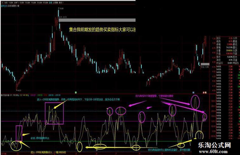 这个指标是10年前一个超级散户给我的,在CCI基础上演变的,在这些年的使用过程中个人感觉相当不错,可以结合之前发的《趋势买卖》指标一起使用,精准率提高很多,我再次强调,所有指标都有缺陷,都有自己的特点,需要结合自己习惯和其他指标一起研判,指标不是万能的但是看盘没有适合自己的指标是万万不能 的,希望同学们能有所启发,一起交流