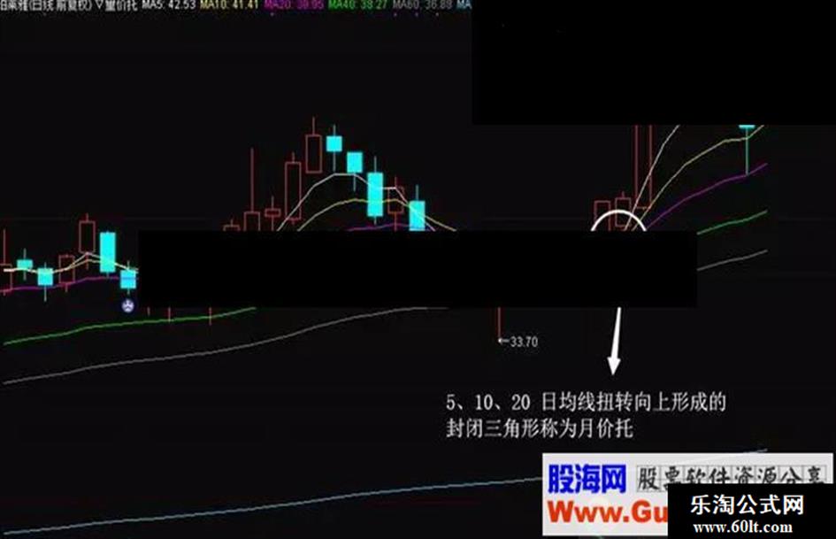 一、月价托由 5、10、20 日均线扭转向上形成的封闭三角形称为月价托。信号用 3号图标(惊讶脸)表示。