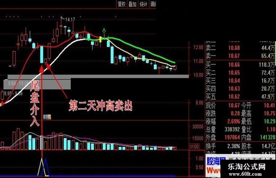 新手,第一次发贴,大家多多支持,分享用钱买的一个指标/选股器,因这指标还有在卖,为什么不影响他人,指标名称我是随便叫的,如果有谁认识这个是在哪里卖,也请不要说,我不想影响他人。 使用方法:在尾盘几分钟选股,出现信号,在未盘2分钟信号没有消息,便可以介入,第二天冲高卖出,止赢止损大家心里设置好,一般冲高1-2点便可以出了,止损设在4个点,防止深套。没有一个指示是100%准的,大家可以先观察几天,再考虑实操。盈亏自负