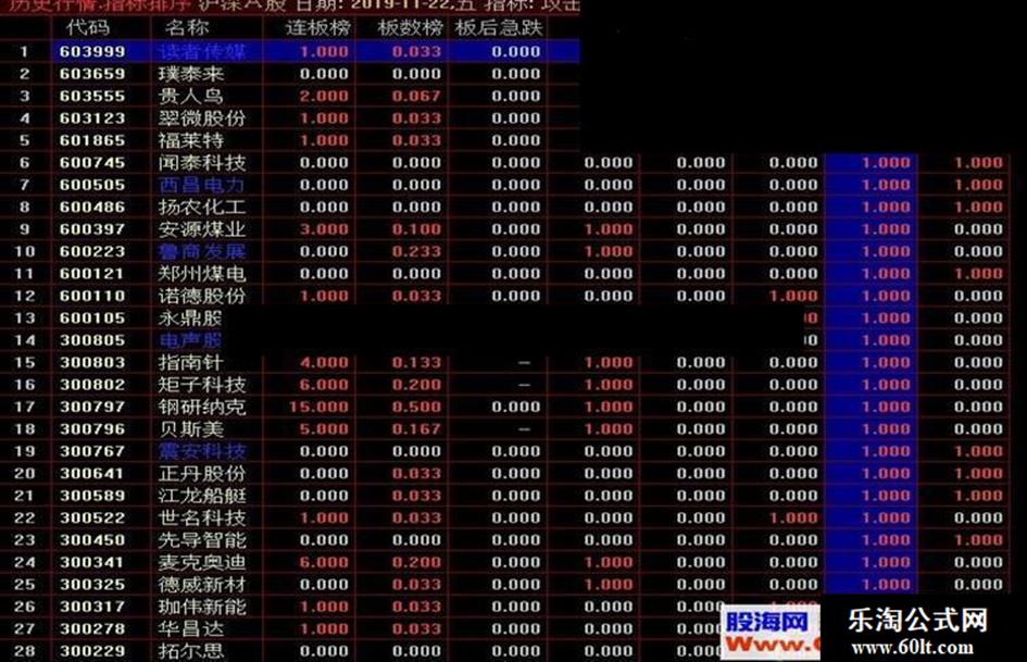 此排序指标也来自于网络,我组合和优化了一下,适用于 1、观察强势连板以及分布(连板,首板,曾涨停,低位板) 2、近期连跌股 3、近期连涨股(非涨停但包含涨停) 4、市场情绪以及风险 指标只是工具,昨强未必今天强,最近的市场羸弱不堪,还是谨慎点。