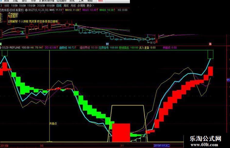 买入准备:IF(趋势线<=10,40,0),LINETHICK2,COLORYELLOW;