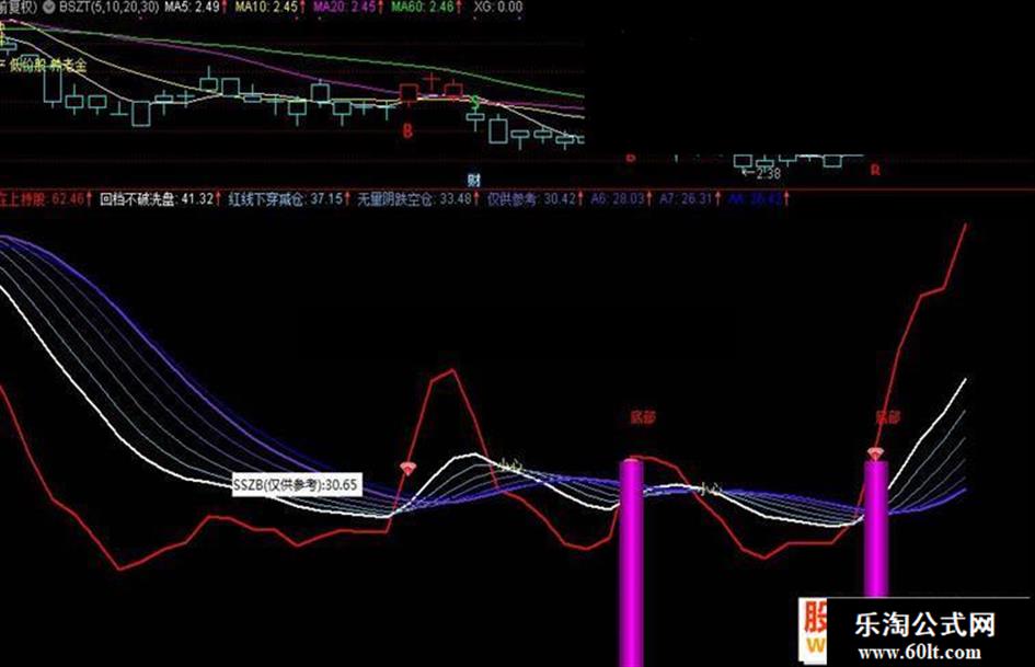 DRAWTEXT(CROSS(红线下穿减仓,红线在上持股),红线下穿减仓,'小心'),COLORYELLOW;