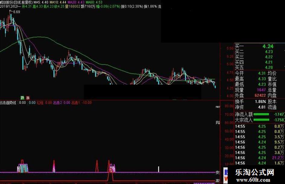 出击1:IF(BARSCOUNT(CLOSE)<70,-10,IF(VAR1A<=-200 AND VAR19<=-150,15,VAR1C)-10),COLORRED,LINETHICK2,;