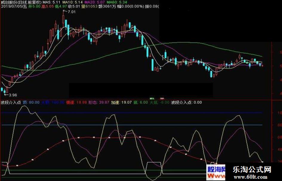 波段介入点:IF(A2<19,19,0)COLORWHITE;