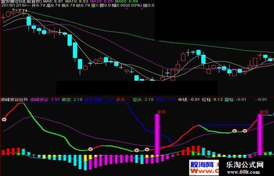 波峰波谷:SMA(拉升力A,3,1),COLORFF00FF;