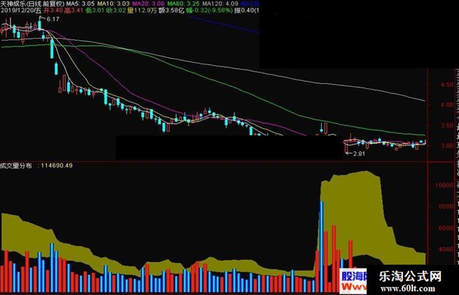 STICKLINE(CLOSE>=OPEN,0,V,1.0,0) ,COLOR1020DD;