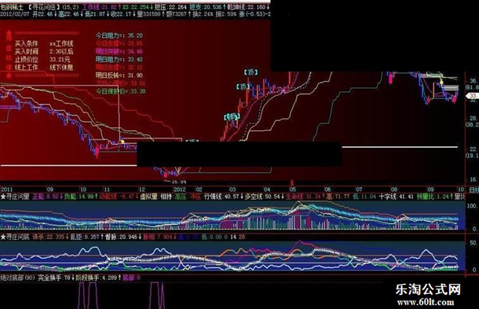 本指标根据完全换手和阶段换手来寻求相对大的底部,参数N可调整,100可靠度较大,信号较少,这里先设置为90;对于流通盘较大的特别是10个亿以上的个股,这里先放大一倍,比如贴图的包钢稀土。