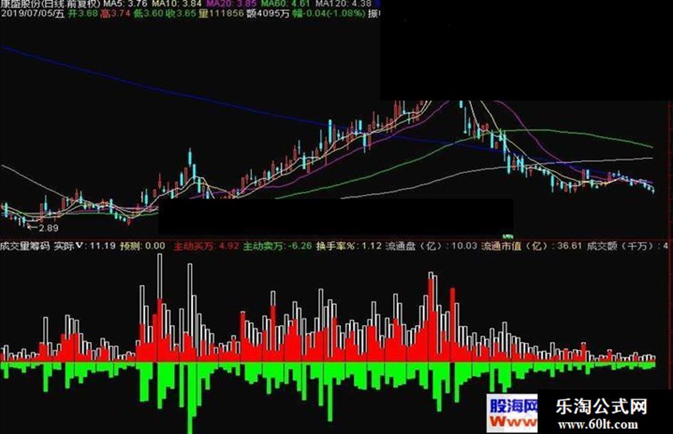 主动卖盘:=IF(CLOSE>OPEN,0-AA*((HIGH-CLOSE)+(OPEN-LOW)),IF(CLOSE<OPEN,