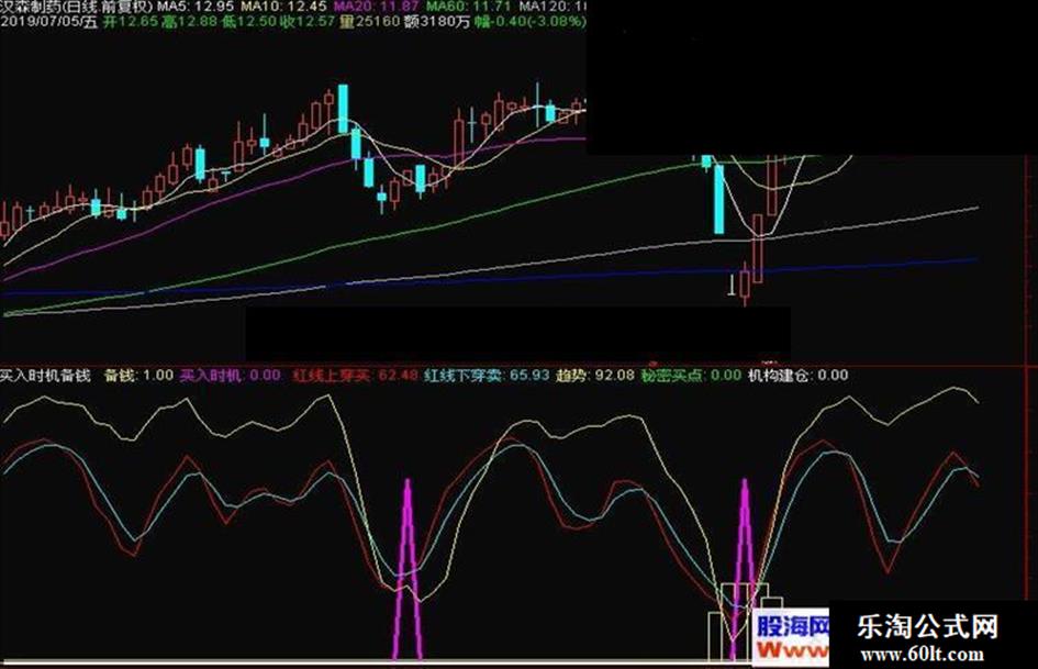 买入时机: IF(CROSS(J,3),65,0),COLORFF00FF,LINETHICK3;