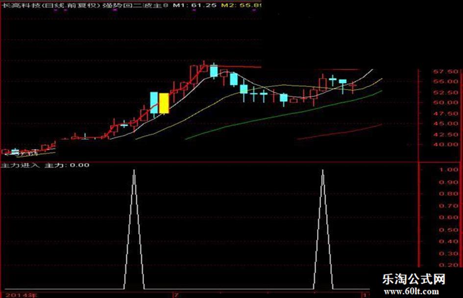 主力进场:=IF(CROSS(AA,BB),3,0),LINETHICK5,COLORMAGENTA;