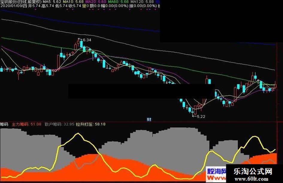 筹码:= SMA((HHV(HIGH,36)-CLOSE)/(HHV(HIGH,36)-LLV(LOW,36))*100,2,1);