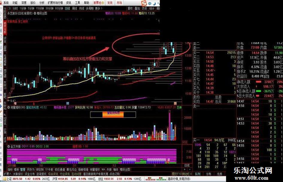 三条线分别是获利20 获利40 获利70线,很多时候回调洗盘至40线有很强支撑,70线和20线间箱体震荡,主力吸筹不可能拉升,无操作意义,上穿70线后留意观察走向,突破平台回调不破,配合成交量反转买入,跌破70线,建议出来等40线支撑反转再进去 ,如果你钟情这支股的话。 K线叠加筹码 方便大家看支撑和压力 ,每个价位的量堆积了多少和筹码移动情况。 不是每个上穿70线都会走牛,但是不穿70线,也没什么意义,多分析龙头股和平台突破回调不破反转,仅供参考,不喜勿喷!