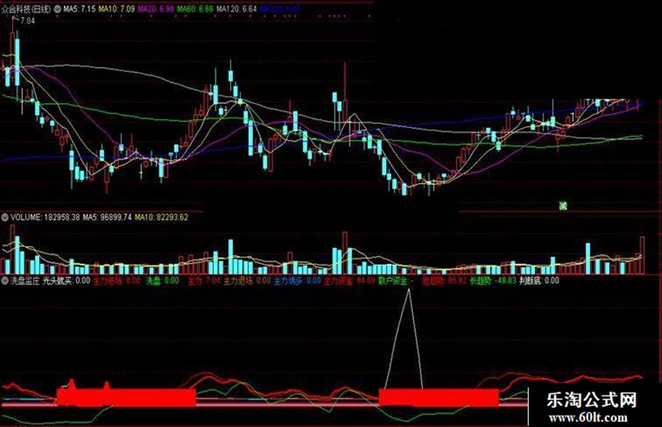 综合了四个通达信公式而编写成功,看量来定进退,操作八九不离十。