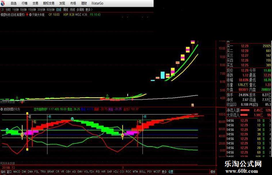 这个《开天眼》信号属于两线交叉出信号,其中的F5绿色上叉线在趋势的作用下,一旦出现,往往会有大大小小的一波上升行情。而当行情结束,动能减弱K线下跌、且达到一定下跌·幅度时,整条F5绿色线会自动消失。直到经过几个月观察才认为上升动能增加才会出现F5绿色线。在与下插线交叉的最初阶段,只要K线回升趋势呈小角度爬坡达到30%角以上,其信号出现在股价初长时最可靠。当然,对于空中加油回马枪像风范股份的两波拉升,以及最近的600789鲁抗医药、300630立昂技术、002837英雄克、002641永高股份、000700模塑科技、按照涨停板去搜吧,其准确度也很高。