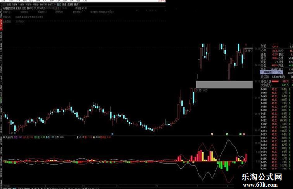 流入亿:IF(CLOSE>OPEN,VAR1*(HIGH-LOW),IF(CLOSE<OPEN,VAR1*((HIGH-OPEN)+ (CLOSE-LOW)),AMOUNT/2))/100000000,COLORRED,NODRAW;