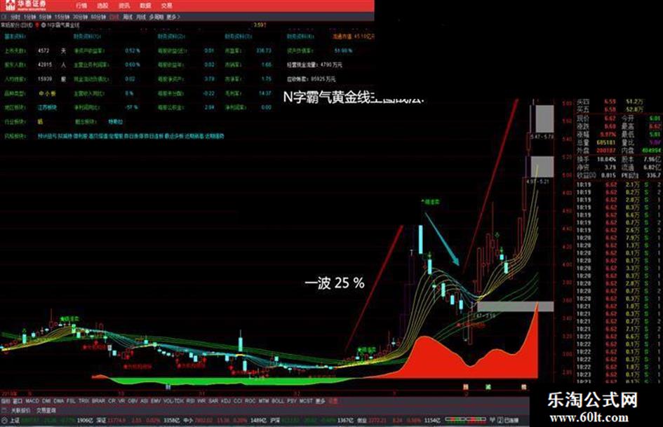 今天发一款N字霸气黄金线主图指标战法:特点趋势N字波段运行.可以抓住每一波上涨的乐趣.盘中追涨杀跌清晰明了.操盘k线站上黄金线.主图底部能量潮连续抬高泛红后进入多头行情买入.分享追随大机构庄家一起座轿子的喜悦.为了避免有的朋友们对主图使用划线后未来函数产生的质疑,所以本次主图不做任何画线,只做信号标注。大道至简,有信号提示就行了。温馨提示:实盘请注意风险,及时获利出局 千万别贪婪见好就收。世上没有百分百的指标公式.指标只是辅助工具,具体交易要结合大盘和个股情况来看。公式只是方便缩小选股范围,决策还是要靠人脑,迷信指标公式万万不可。此指标已经测试验证过了.没有未来函数!