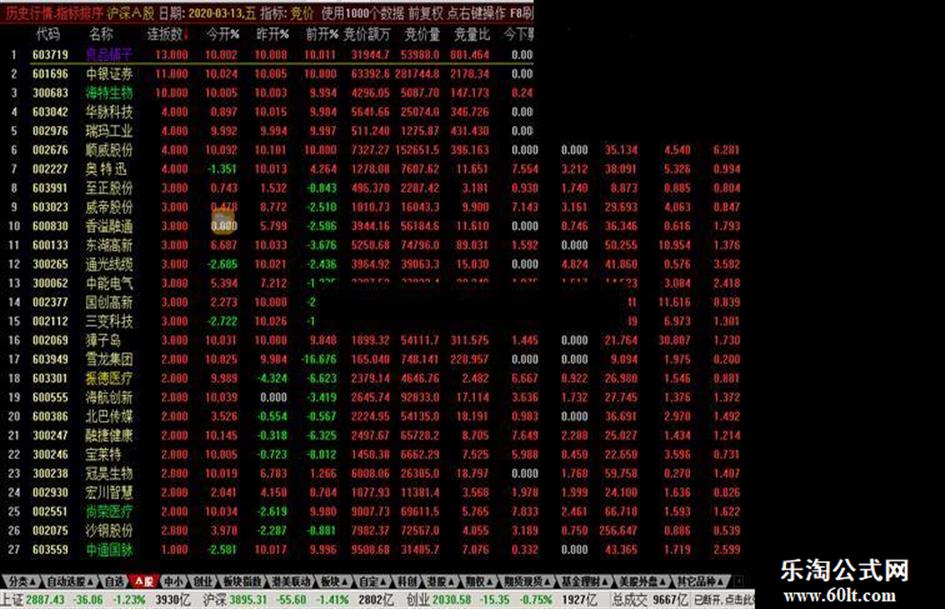 连扳数:BARSLASTCOUNT(C>=REF(C,1)*1.095 AND C=H);