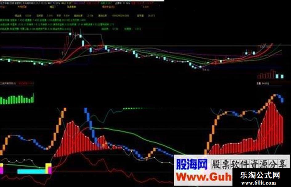 短线波段:IF((转折=1 AND 短期B>=短期A) OR (REF(短期B,1)<REF(短期A,1) AND 短期B>=短期A AND 中期波段>REF(中期波段,1)),1,0),LINETHICK0,COLOR0080EF;