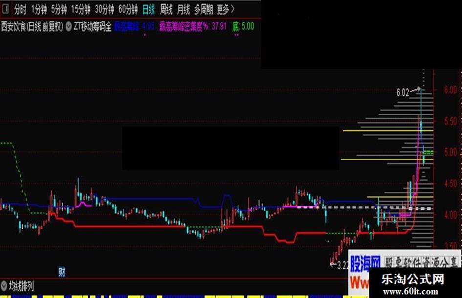 三个指标综合,移动筹码神线,移动筹码峰及最长筹码峰,将三个指标统一到一个主图
