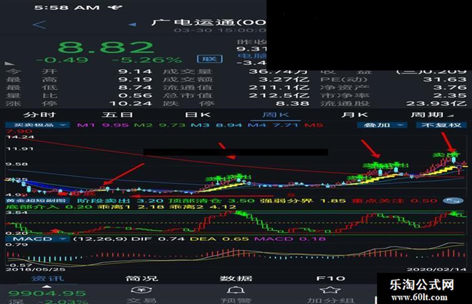 OPEN>REF(CLOSE,1),1,0),LOW,'●买进'), COLORRED;