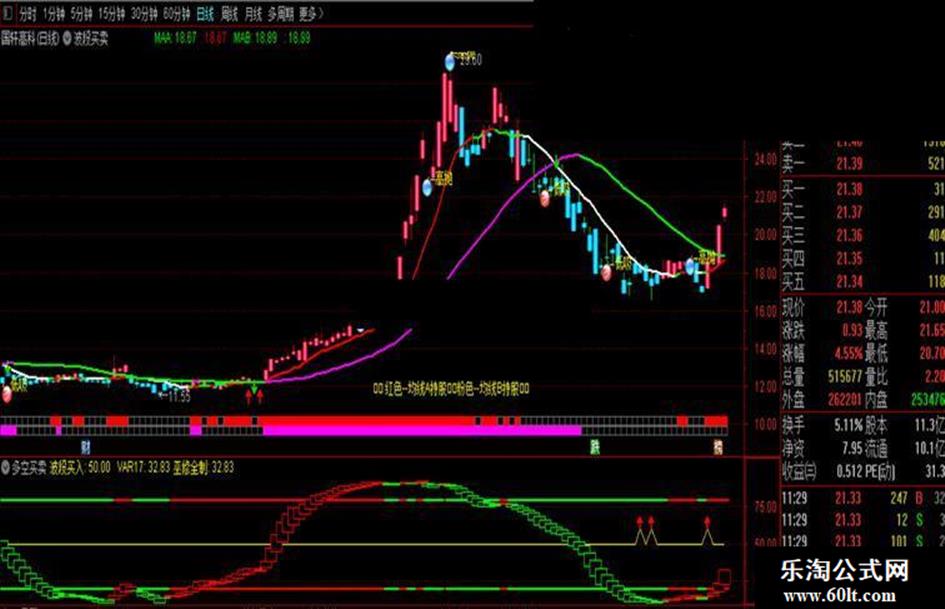 作为一个股民赚钱不容易,得用心去研究怎么买股卖股?现在分享一下一个炒股老师傅给的一个主图指标及一个副图指标,都是用来做波段的,希望大家喜欢! 波段买卖指标的使用方法:K线变红,并且下方的两条槽出现红色和紫色出现就是买点;K线变绿,或者下方的红色槽消失,卖点出现!红色槽跟紫色槽都不在,空仓状态!
