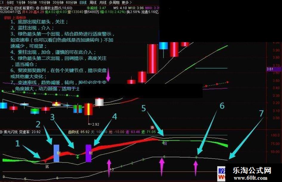 为了更能研判趋势,本人也拼拼凑凑的把箱底的公式加进去了,加入了变速率线、斐波那契数列。当变速率转换时,即正负交替时,斐波那契数列重新计数,意味着向上或向下动能重新开始,对于趋势,加速及惯性判断很有帮助。数列的每个数字节点,都值得去好好把握,大概率的会出现一些变盘现象。