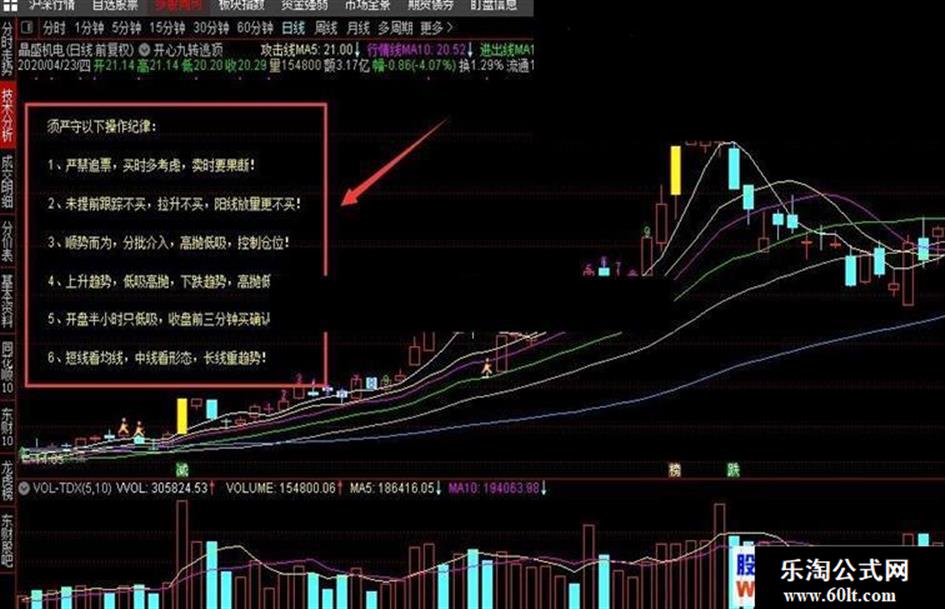 DRAWTEXT_FIX(C!=0,0.02,0.3,0,' 2、未提前跟踪不买,拉升不买,阳线放量更不买!'),COLORYELLOW;