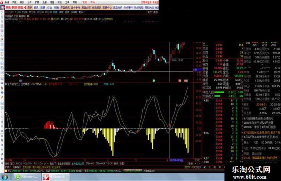 主力拉高:IF(VAR51<REF(VAR51,1),VAR51,0),COLORYELLOW,NODRAW;