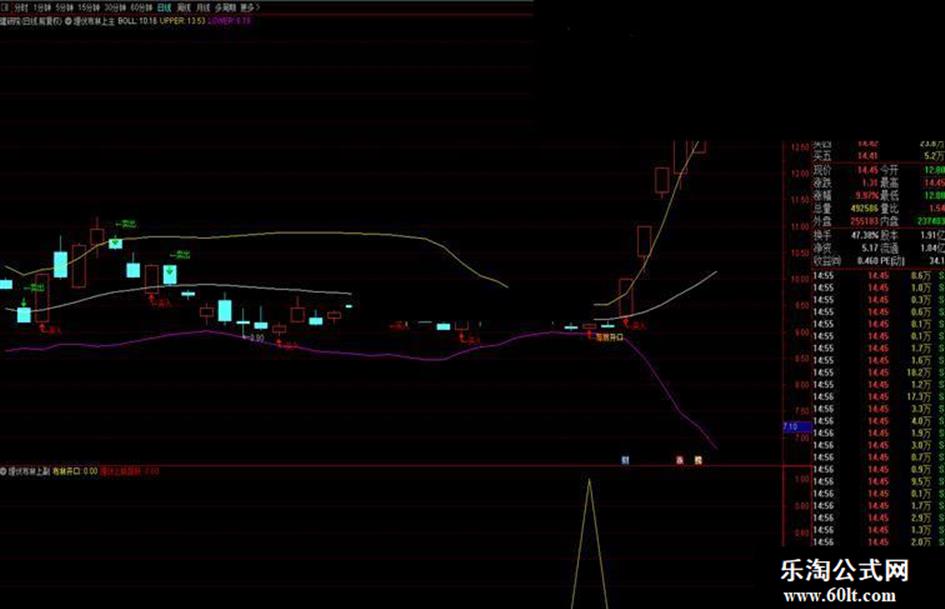 《埋伏布林上轨捉妖》设计思路:当股价站上所有均线上方,并具有突破布林上轨潜力时,发出信号,这种形态下极有攻击性,走妖可能性大增。当然也要需要注意,如果发出信号后,股价没有成功站稳布林上轨沿布林上轨运行,反而冲高回落或者次日走弱,那么就需要及时卖出,因为这种形态下股价处在波段相对高位,震荡加剧是必然的,毕竟妖股总是少数票。可以根据热点板块、资金关注度、成交量、换手率、是否是板块龙头等综合考虑认真选票。《主图》带有卖出信号,可以帮助大家及时获利了结或规避风险。